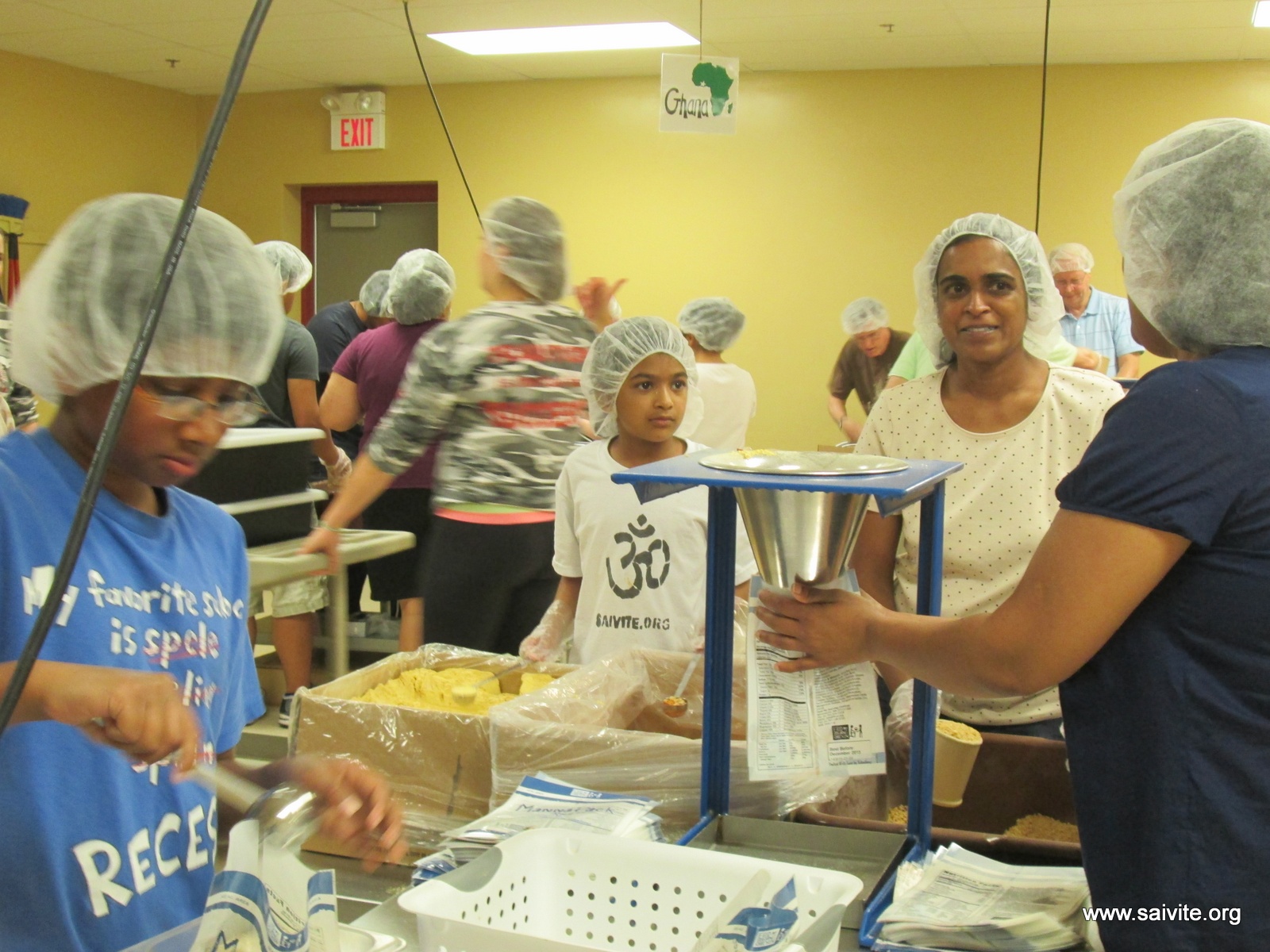 Children along with their parents FMSC and packed meals that was sent to feed the…